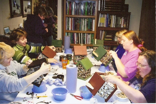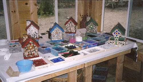 This is a fun and casual class. David will have lots of pebbles and mosaic supplies for you to use to design your one-of-a-kind birdhouse. We have lots of colors to choose from. Bring a bit of color to your garden.