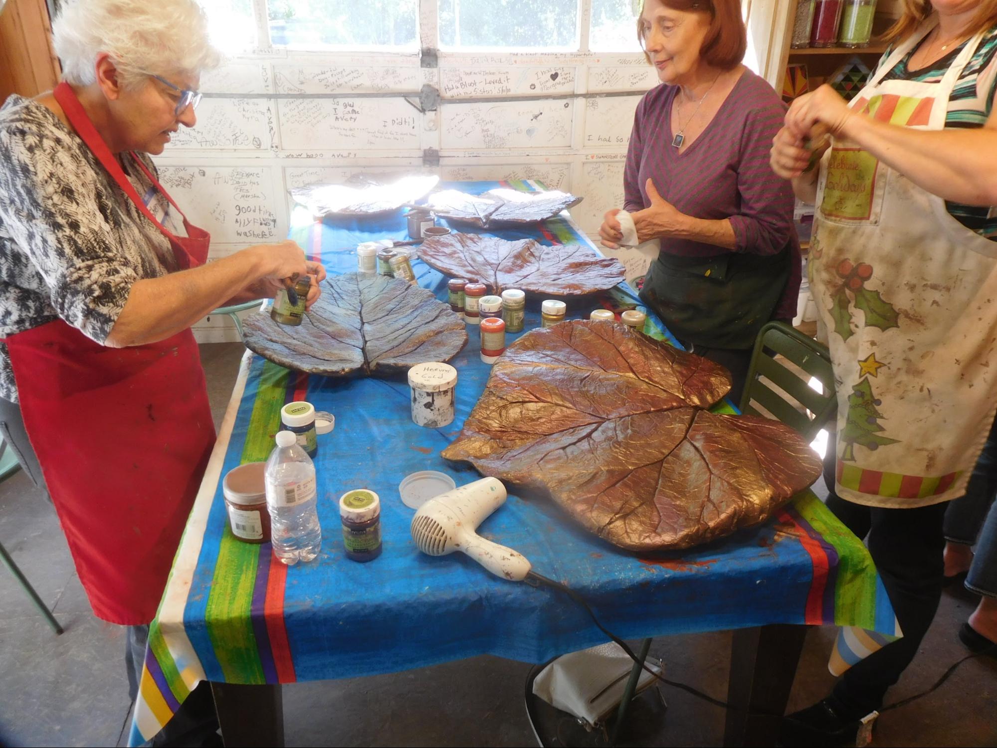 This is a way to preserve your favorite leaves in a hands-on class making a concrete casting, a process that creates cement molds from your leaves. The natural depressions and veins of your leaf are captured in amazing detail. Once cured, you can hang them or use them ornamentally in your garden.